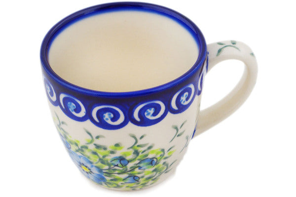 This Polish Pottery Mug is handmade and handpainted by the Ceramika Bona factory in Boleslawiec, Poland. Manufacturer item number H2141R. It is 3" high and measures 4½" by 3½". The capacity of this Mug is 8.12 oz (brimful) and it weighs 0.6 lbs. It is part of the Gorgeous Morning Glory Collection.