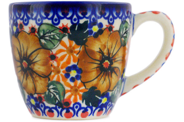 This is a Polish pottery Unikat (Signature) Mug, which means that it has been hand painted with both sponges and brushes and it is signed by the artist who painted it. Unikat pieces are the most intricate works of art. Larger Unikat items take hours of very careful work to finish.