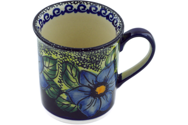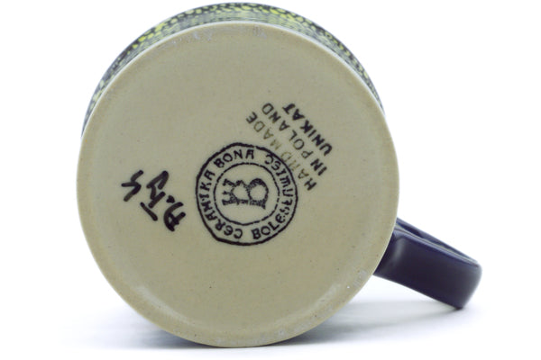 This Polish Pottery Mug is handmade and handpainted by the Cer-Raf factory in Boleslawiec, Poland. Manufacturer item number H6175I. It is 3½" high and measures 4½" by 3¼". The capacity of this Mug is 8.45 oz (brimful) and it weighs 0.6 lbs. It is part of the Midnight Glow Collection.