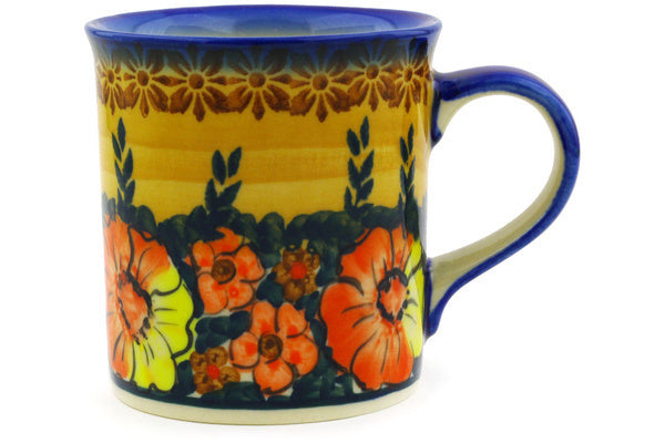 This Polish Pottery Mug is handmade and handpainted by the Ceramika Bona factory in Boleslawiec, Poland. Manufacturer item number H0726F. It is 3½" high and measures 4½" by 3¼". The capacity of this Mug is 8.45 oz (brimful) and it weighs 0.7 lbs. It is part of the Poppy Love Collection.