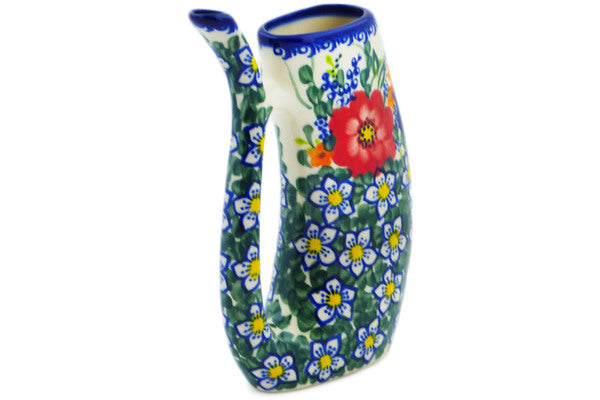 This Polish Pottery Sipper Mug is handmade and handpainted by the Vena factory in Boleslawiec, Poland. Manufacturer item number H4084N. It is 6½" high and measures 5" by 1¾". The capacity of this Sipper Mug is 8.45 oz (brimful) and it weighs 0.5 lbs. It is part of the Polish Garden Collection.