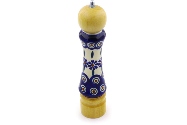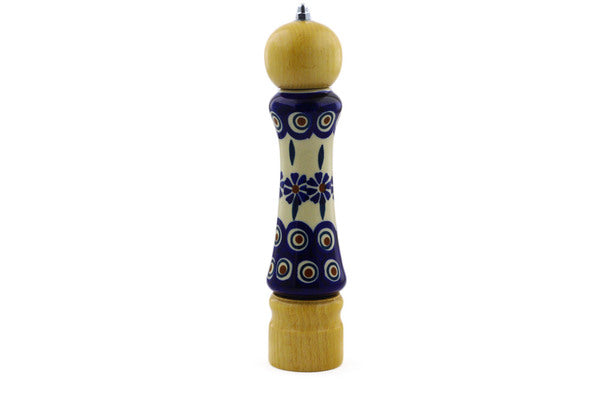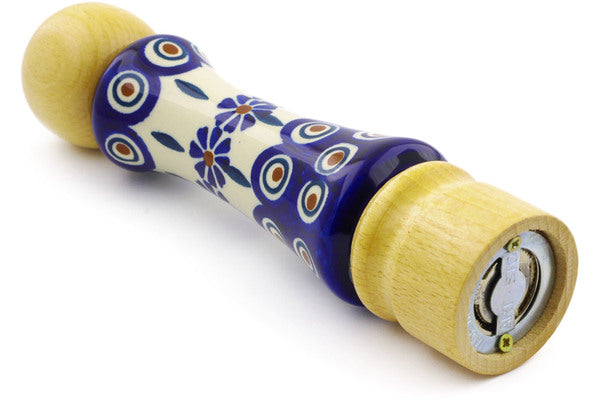 This Polish Pottery Grinder is handmade and handpainted by the Manufaktura factory in Boleslawiec, Poland. Manufacturer item number H9645I. It is 8½" high and measures 2" by 2". The weight of this Grinder is 0.5 lbs. It is part of the Peacock Collection.