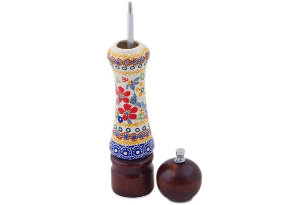 This Polish Pottery Grinder is handmade and handpainted by the Manufaktura factory in Boleslawiec, Poland. Manufacturer item number H2767J. It is 8½" high and measures 2" by 2". The weight of this Grinder is 0.5 lbs. It is part of the Summer Bouquet Collection.