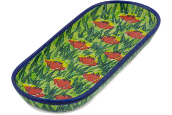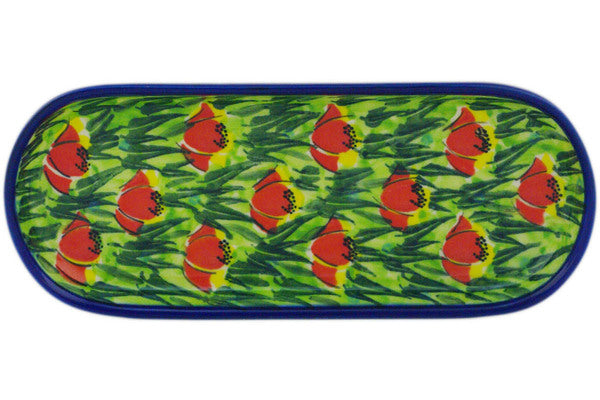 This Polish Pottery Platter is handmade and handpainted by the Dalia factory in Boleslawiec, Poland. Manufacturer item number H1594R. It is ¾" high and measures 8½" by 3½". The weight of this Platter is 0.8 lbs. It is part of the Poppy Fever Collection.