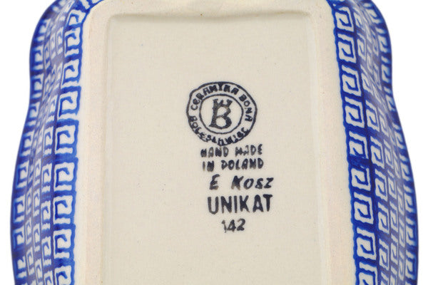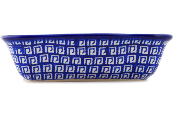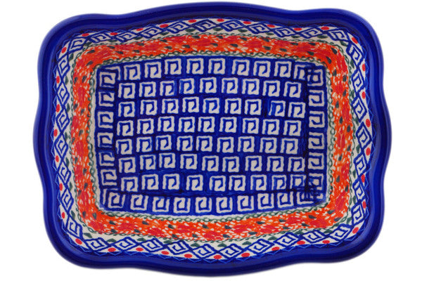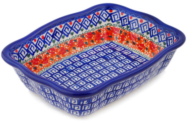 This Polish Pottery Rectangular Baker is handmade and handpainted by the Ceramika Bona factory in Boleslawiec, Poland. Manufacturer item number H9696Q. It is 2" high and measures 8" by 6¼". The capacity of this Rectangular Baker is 24.55 oz (brimful) and it weighs 1.5 lbs. It is part of the Grecian Fire Tulips Collection.