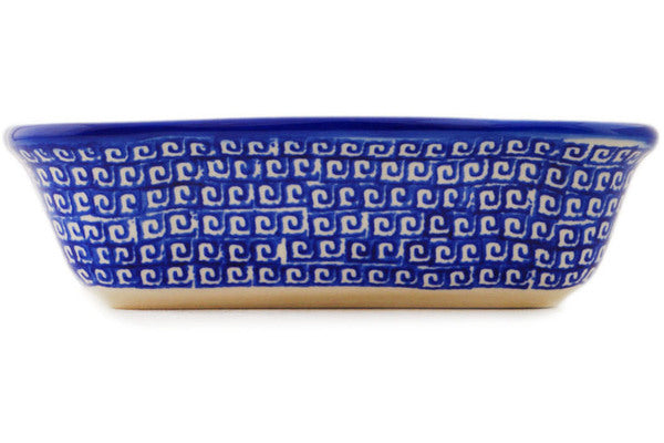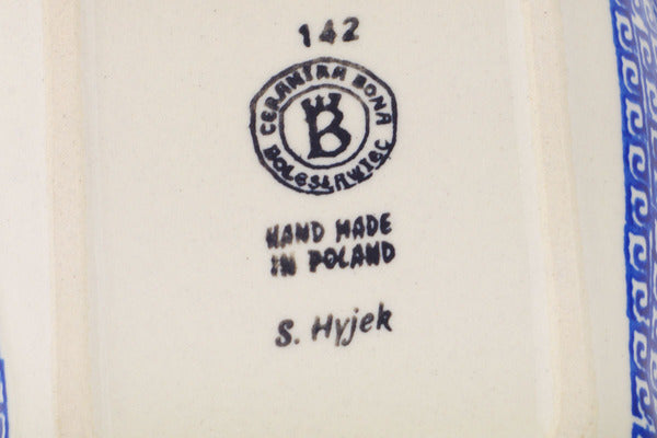 This Polish Pottery Rectangular Baker is handmade and handpainted by the Ceramika Bona factory in Boleslawiec, Poland. Manufacturer item number H5701P. It is 2" high and measures 8" by 6¼". The capacity of this Rectangular Baker is 24.55 oz (brimful) and it weighs 1.5 lbs. It is part of the Greek Daisies Collection.