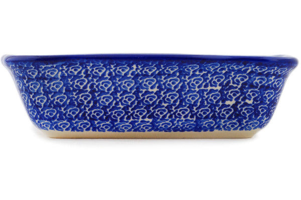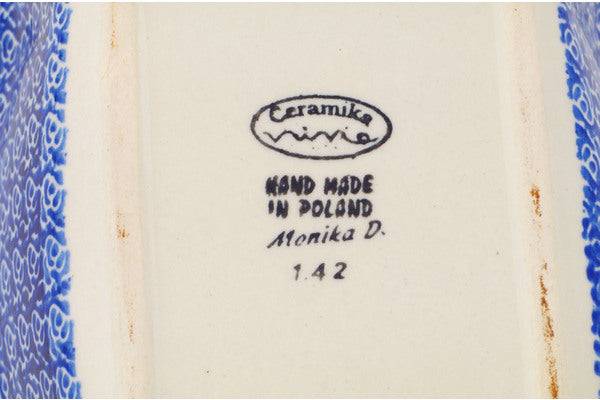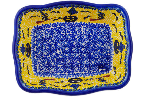 This Polish Pottery Rectangular Baker is handmade and handpainted by the Ceramika Nina factory in Boleslawiec, Poland. Manufacturer item number H3253P. It is 2" high and measures 8" by 6¼". The capacity of this Rectangular Baker is 24.55 oz (brimful) and it weighs 1.5 lbs. It is part of the Halloween Evening Collection.