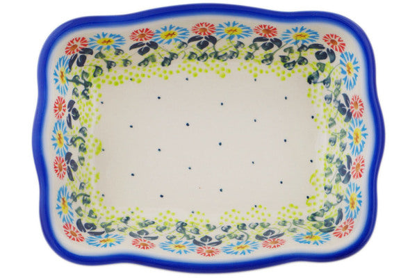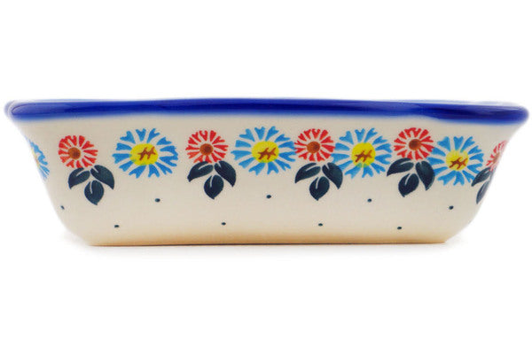 This Polish Pottery Rectangular Baker is handmade and handpainted by the Ceramika Bona factory in Boleslawiec, Poland. Manufacturer item number H9836Q. It is 2" high and measures 8" by 6¼". The capacity of this Rectangular Baker is 24.55 oz (brimful) and it weighs 1.5 lbs. It is part of the Long-stemmed Beauties Collection.
