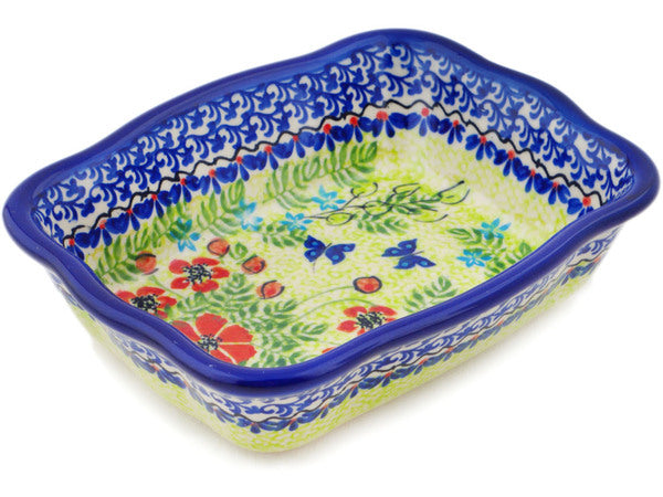 This Polish Pottery Rectangular Baker is handmade and handpainted by the Ceramika Bona factory in Boleslawiec, Poland. Manufacturer item number H8726Q. It is 2" high and measures 8" by 6¼". The capacity of this Rectangular Baker is 24.55 oz (brimful) and it weighs 1.5 lbs. It is part of the Metamorphosis Collection.