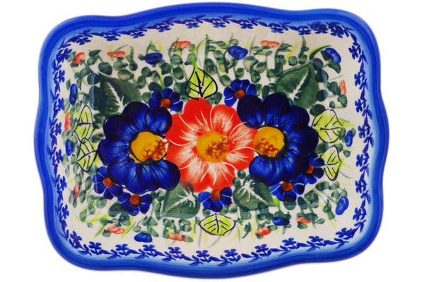 This Polish Pottery Rectangular Baker is handmade and handpainted by the Ceramika Bona factory in Boleslawiec, Poland. Manufacturer item number H7137Q. It is 2" high and measures 8" by 6¼". The capacity of this Rectangular Baker is 24.55 oz (brimful) and it weighs 1.5 lbs. It is part of the Poppy Trio Collection.