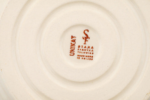 This is a Polish pottery Unikat (Signature) Round Baker with Handles, which means that it has been hand painted with both sponges and brushes and it is signed by the artist who painted it. Unikat pieces are the most intricate works of art. Larger Unikat items take hours of very careful work to finish.