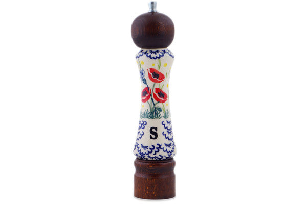 This Polish Pottery Salt Grinder is handmade and handpainted by the Manufaktura factory in Boleslawiec, Poland. Manufacturer item number H3063R. It is 8½" high and measures 2" by 2". The weight of this Salt Grinder is 0.5 lbs. It is part of the Poppies and Cornflowers Collection.
