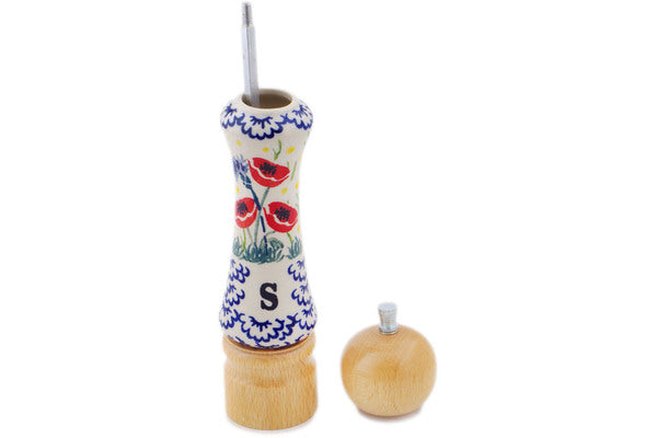 This Polish Pottery Salt Grinder is handmade and handpainted by the Manufaktura factory in Boleslawiec, Poland. Manufacturer item number H3057R. It is 8½" high and measures 2" by 2". The weight of this Salt Grinder is 0.5 lbs. It is part of the Poppies and Cornflowers Collection.
