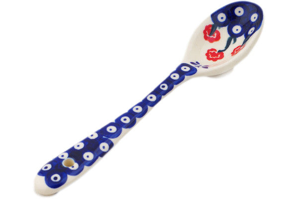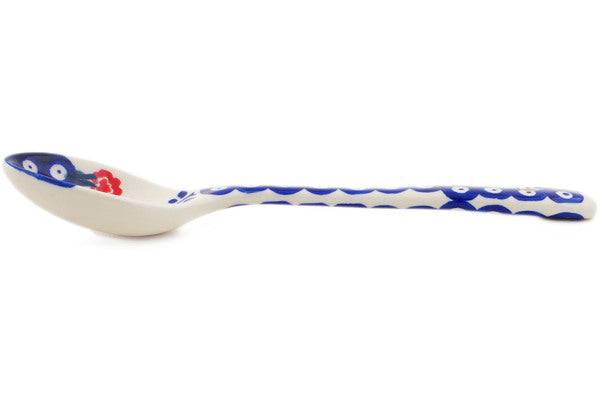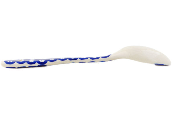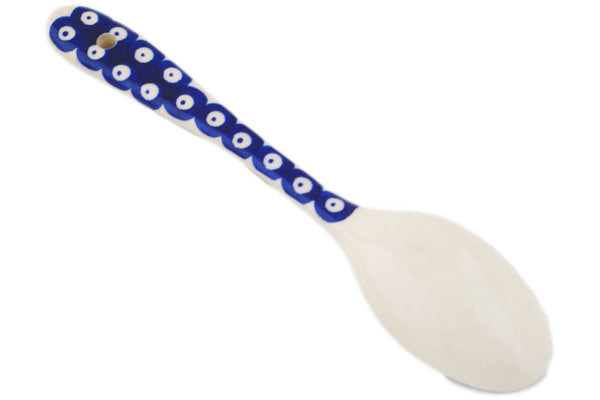 This Polish Pottery Spoon is handmade and handpainted by the Ceramika Bona factory in Boleslawiec, Poland. Manufacturer item number H5493P. It is 1½" high and measures 8" by 1¾". The weight of this Spoon is 0.2 lbs. It is part of the Blue Eye Spring Collection.