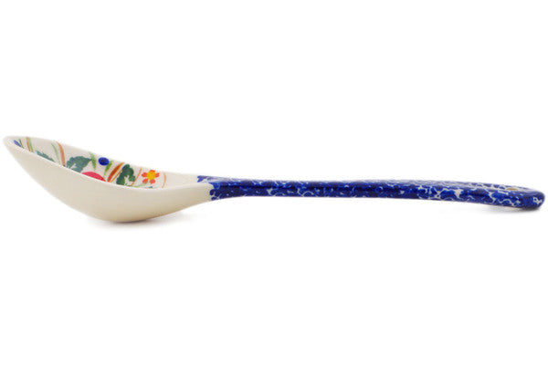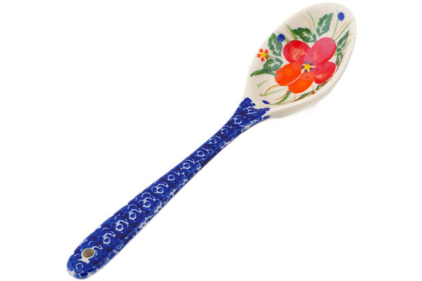 This Polish Pottery Spoon is handmade and handpainted by the Ceramika Bona factory in Boleslawiec, Poland. Manufacturer item number H5696P. It is 1" high and measures 8½" by 2¼". The weight of this Spoon is 0.2 lbs. It is part of the Vermilion Clusters Collection.