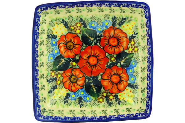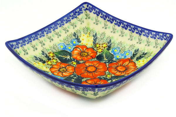 This Polish Pottery Square Bowl is handmade and handpainted by the Ceramika Bona factory in Boleslawiec, Poland. Manufacturer item number H6511F. It is 2½" high and measures 7¾" by 7¾". The capacity of this Square Bowl is 34.36 oz (brimful) and it weighs 1.8 lbs. It is part of the Bold Red Poppies Collection.