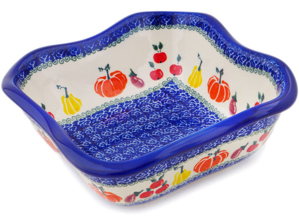 This Polish Pottery Square Bowl is handmade and handpainted by the Ceramika Bona factory in Boleslawiec, Poland. Manufacturer item number H1738P. It is 3" high and measures 8¼" by 8¼". The capacity of this Square Bowl is 42.61 oz (brimful) and it weighs 1.9 lbs. It is part of the Fresh Vegetable Garden Collection.