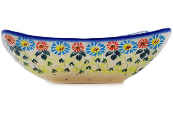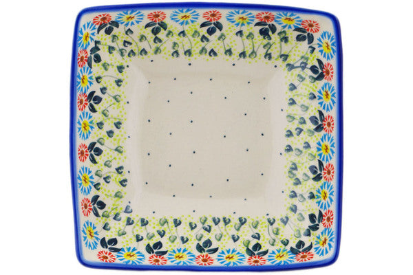 This Polish Pottery Square Bowl is handmade and handpainted by the Ceramika Bona factory in Boleslawiec, Poland. Manufacturer item number H9830Q. It is 2½" high and measures 7¾" by 7¾". The capacity of this Square Bowl is 34.36 oz (brimful) and it weighs 1.8 lbs. It is part of the Long-stemmed Beauties Collection.