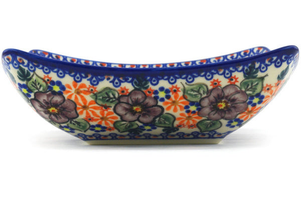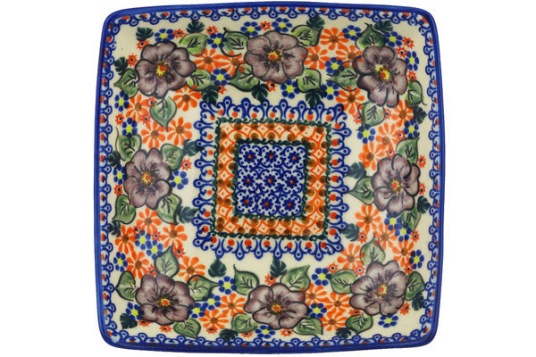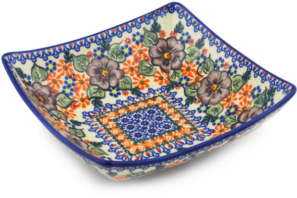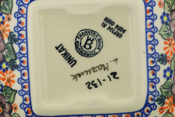 This Polish Pottery Square Bowl is handmade and handpainted by the Ceramika Bona factory in Boleslawiec, Poland. Manufacturer item number H0607H. It is 2½" high and measures 7¾" by 7¾". The capacity of this Square Bowl is 34.36 oz (brimful) and it weighs 1.8 lbs. It is part of the Mauve Poppies Collection.