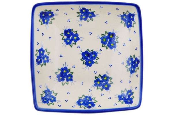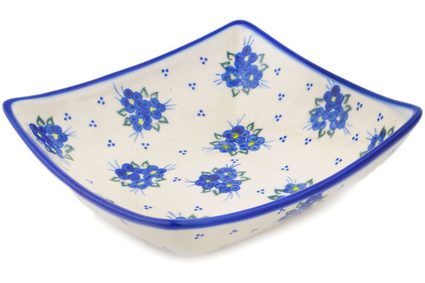 This Polish Pottery Square Bowl is handmade and handpainted by the Ceramika Bona factory in Boleslawiec, Poland. Manufacturer item number H9551Q. It is 2½" high and measures 7¾" by 7¾". The capacity of this Square Bowl is 34.36 oz (brimful) and it weighs 1.8 lbs. It is part of the Poppy Triad Collection.