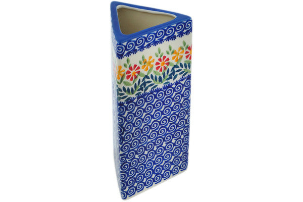 This Polish Pottery Vase is handmade and handpainted by the Manufaktura factory in Boleslawiec, Poland. Manufacturer item number H1192O. It is 7¾" high and measures 3¾" by 3¼". The capacity of this Vase is 20.32 oz (brimful) and it weighs 1.3 lbs. It is part of the Wave Of Flowers Collection.