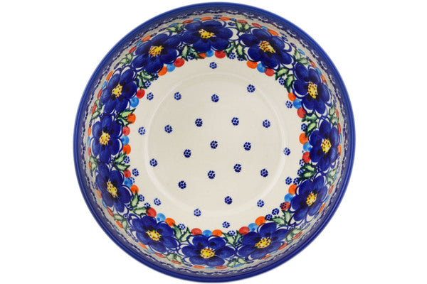 This is a Polish pottery Unikat (Signature) Bowl, which means that it has been hand painted with both sponges and brushes and it is signed by the artist who painted it. Unikat pieces are the most intricate works of art. Larger Unikat items take hours of very careful work to finish.