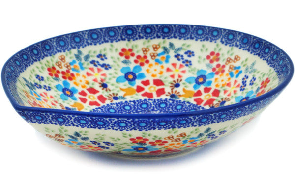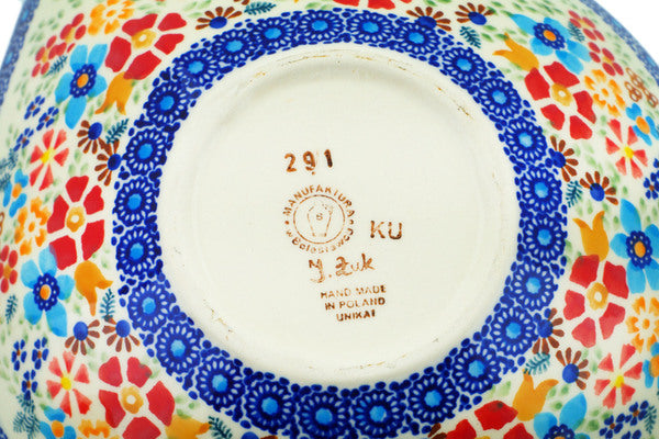 This Polish Pottery Bowl is handmade and handpainted by the Manufaktura factory in Boleslawiec, Poland. Manufacturer item number H2686M. It is 2½" high and measures 8¾" by 8". The capacity of this Bowl is 23.40 oz (brimful) and it weighs 1.3 lbs. It is part of the Polish Spring Collection.