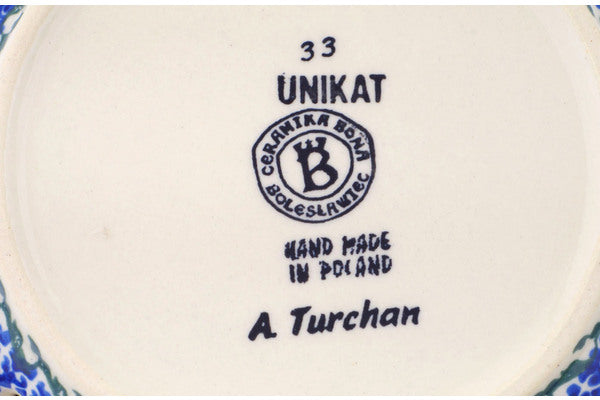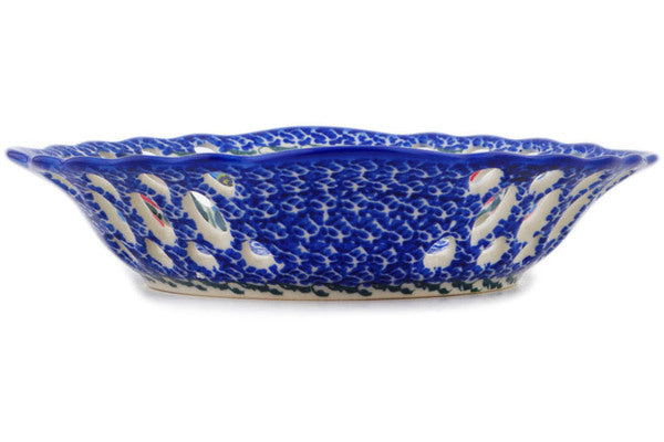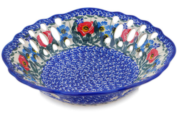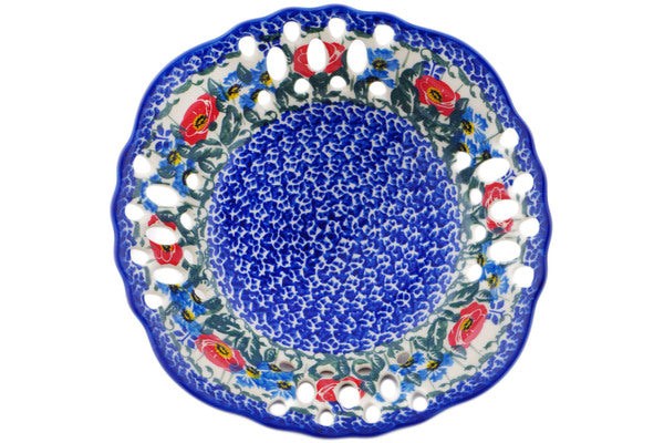 This Polish Pottery Bowl with Holes is handmade and handpainted by the Ceramika Bona factory in Boleslawiec, Poland. Manufacturer item number H3906Q. It is 2" high and measures 9" by 9". The capacity of this Bowl with Holes is 2.23 oz (brimful) and it weighs 1.1 lbs. It is part of the Open Fields Collection.