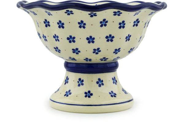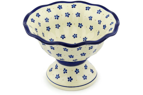 This Polish Pottery Bowl with Pedestal is handmade and handpainted by the Zaklady Ceramiczne factory in Boleslawiec, Poland. Manufacturer item number H3055H. It is 6½" high and measures 9½" by 9½". The capacity of this Bowl with Pedestal is 54.10 oz (brimful) and it weighs 2.5 lbs. It is part of the Daisy Field Collection.