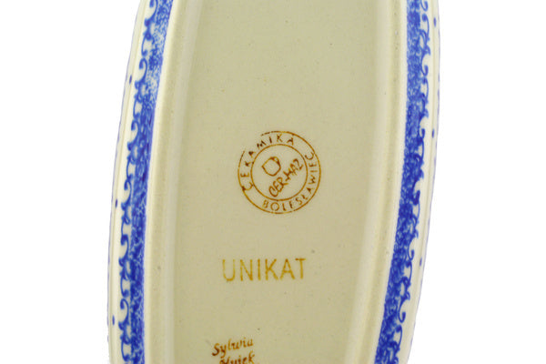 This is a Polish pottery Unikat (Signature) Corn Tray, which means that it has been hand painted with both sponges and brushes and it is signed by the artist who painted it. Unikat pieces are the most intricate works of art. Larger Unikat items take hours of very careful work to finish.