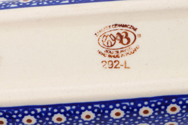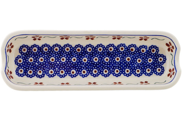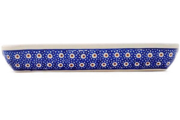 This Polish Pottery Corn Tray is handmade and handpainted by the Zaklady Ceramiczne factory in Boleslawiec, Poland. Manufacturer item number H5379D. It is 1½" high and measures 8¾" by 2¾". The weight of this Corn Tray is 0.7 lbs. It is part of the Sweet Red Flower Collection.