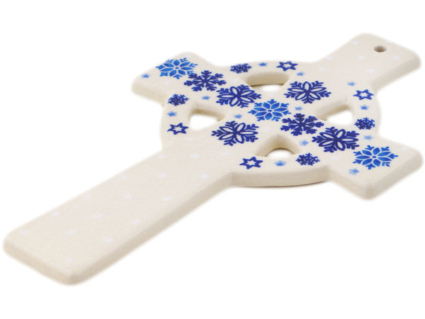 This Polish Pottery Cross is handmade and handpainted by the Manufaktura factory in Boleslawiec, Poland. Manufacturer item number H7143P. It is ¼" high and measures 9" by 5¾". The weight of this Cross is 0.5 lbs. It is part of the Snowdrift Collection.
