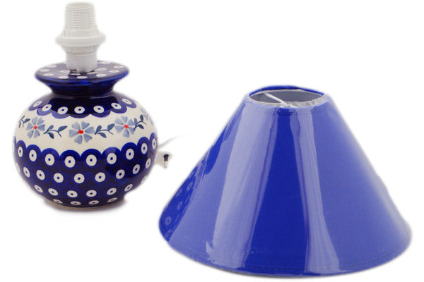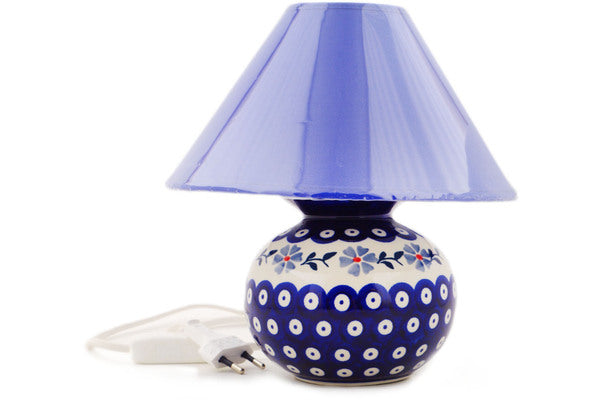 This Polish Pottery Lamp is handmade and handpainted by the Manufaktura factory in Boleslawiec, Poland. Manufacturer item number H7149O. It is 9" high and measures 8" by 8". The weight of this Lamp is 1.4 lbs. It is part of the Peacock Forget-Me-Not Collection.