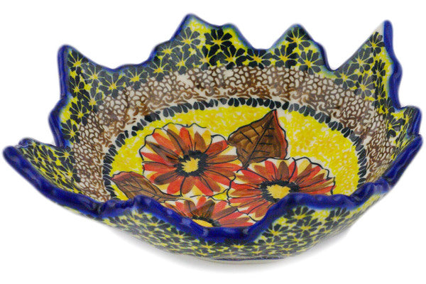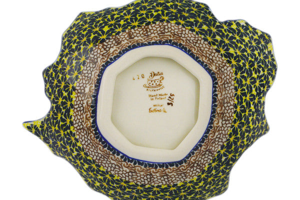 This Polish Pottery Leaf Shaped Bowl is handmade and handpainted by the Dalia factory in Boleslawiec, Poland. Manufacturer item number H2892R. It is 3¼" high and measures 9¼" by 7¾". The capacity of this Leaf Shaped Bowl is 11.56 oz (brimful) and it weighs 1.5 lbs. It is part of the Autumn Days Collection.