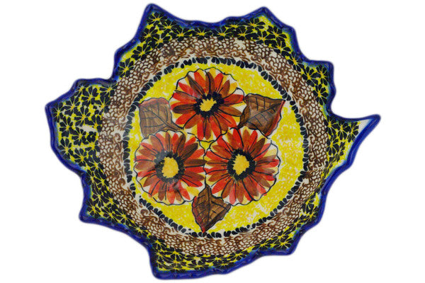 This is a Polish pottery Unikat (Signature) Leaf Shaped Bowl, which means that it has been hand painted with both sponges and brushes and it is signed by the artist who painted it. Unikat pieces are the most intricate works of art. Larger Unikat items take hours of very careful work to finish.