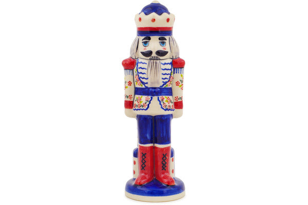 This Polish Pottery Nutcracker Figurine is handmade and handpainted by the Vena factory in Boleslawiec, Poland. Manufacturer item number H2695R. It is 9½" high and measures 2¾" by 2¾". The weight of this Nutcracker Figurine is 0.9 lbs. It is part of the Feeling Rosey Collection.