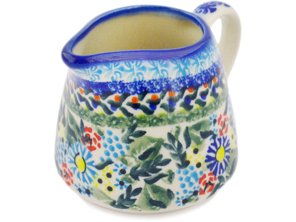 This Polish Pottery Pitcher is handmade and handpainted by the Ceramika Bona factory in Boleslawiec, Poland. Manufacturer item number H6699R. It is 3¼" high and measures 4½" by 3½". The capacity of this Pitcher is 8.99 oz (brimful) and it weighs 0.5 lbs. It is part of the Flor-De-Lis Collection.