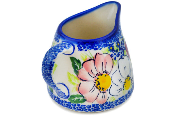 This Polish Pottery Pitcher is handmade and handpainted by the Ceramika Nina factory in Boleslawiec, Poland. Manufacturer item number H2802P. It is 3¼" high and measures 4½" by 3½". The capacity of this Pitcher is 8.99 oz (brimful) and it weighs 0.5 lbs. It is part of the Maroon Blossoms Collection.