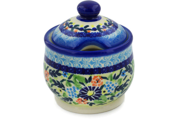 This is a Polish pottery Unikat (Signature) Sugar Bowl, which means that it has been hand painted with both sponges and brushes and it is signed by the artist who painted it. Unikat pieces are the most intricate works of art. Larger Unikat items take hours of very careful work to finish.