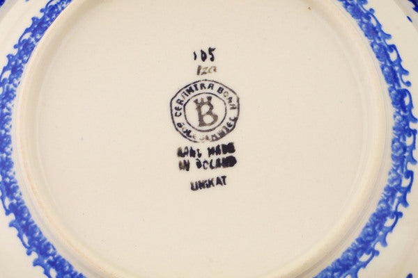 This Polish Pottery Pasta Bowl is handmade and handpainted by the Ceramika Bona factory in Boleslawiec, Poland. Manufacturer item number H0169Q. It is 1½" high and measures 9" by 9". The capacity of this Pasta Bowl is 23.67 oz (brimful) and it weighs 1.4 lbs. It is part of the Autumn Pansies Collection.