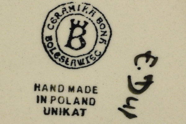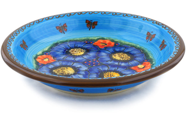 This Polish Pottery Pasta Bowl is handmade and handpainted by the Cer-Raf factory in Boleslawiec, Poland. Manufacturer item number H0836E. It is 1¾" high and measures 9" by 9". The capacity of this Pasta Bowl is 22.55 oz (brimful) and it weighs 1.4 lbs. It is part of the Blue Garden Collection.