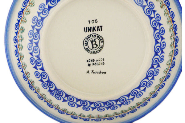 This Polish Pottery Pasta Bowl is handmade and handpainted by the Ceramika Bona factory in Boleslawiec, Poland. Manufacturer item number H0747H. It is 1½" high and measures 9" by 9". The capacity of this Pasta Bowl is 23.67 oz (brimful) and it weighs 1.4 lbs. It is part of the Blue Pansy Collection.