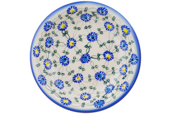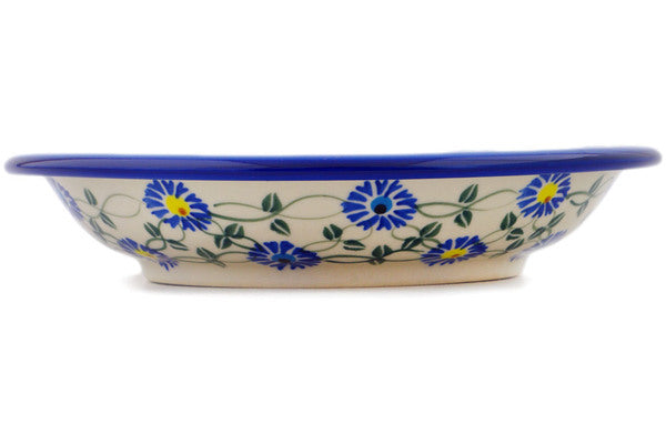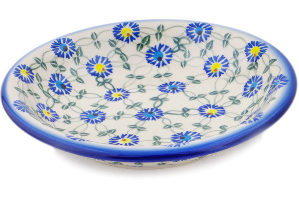 This Polish Pottery Pasta Bowl is handmade and handpainted by the Ceramika Bona factory in Boleslawiec, Poland. Manufacturer item number H9953Q. It is 1½" high and measures 9" by 9". The capacity of this Pasta Bowl is 23.67 oz (brimful) and it weighs 1.4 lbs. It is part of the Blue Thistle Beauty Collection.