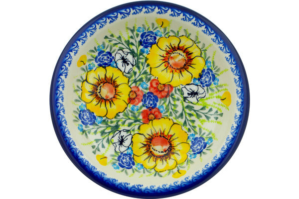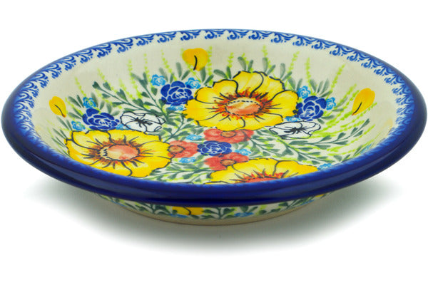 This Polish Pottery Pasta Bowl is handmade and handpainted by the Ceramika Nina factory in Boleslawiec, Poland. Manufacturer item number H9693N. It is 1½" high and measures 9" by 9". The capacity of this Pasta Bowl is 23.67 oz (brimful) and it weighs 1.4 lbs. It is part of the Bright Blooms Collection.
