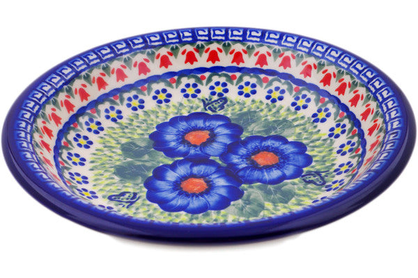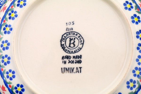 This Polish Pottery Pasta Bowl is handmade and handpainted by the Ceramika Bona factory in Boleslawiec, Poland. Manufacturer item number H3156Q. It is 1½" high and measures 9" by 9". The capacity of this Pasta Bowl is 23.67 oz (brimful) and it weighs 1.4 lbs. It is part of the Brilliant Butterfly Popp Collection.