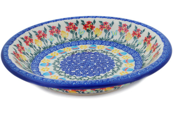 This Polish Pottery Pasta Bowl is handmade and handpainted by the Dalia factory in Boleslawiec, Poland. Manufacturer item number H6995P. It is 1¾" high and measures 9" by 9". The capacity of this Pasta Bowl is 21.57 oz (brimful) and it weighs 1.4 lbs. It is part of the Egg Hunt Collection.