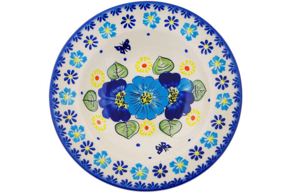 This Polish Pottery Pasta Bowl is handmade and handpainted by the Ceramika Bona factory in Boleslawiec, Poland. Manufacturer item number H3154Q. It is 1¾" high and measures 9¼" by 9¼". The capacity of this Pasta Bowl is 11.09 oz (brimful) and it weighs 1.5 lbs. It is part of the Endless Summer Collection.