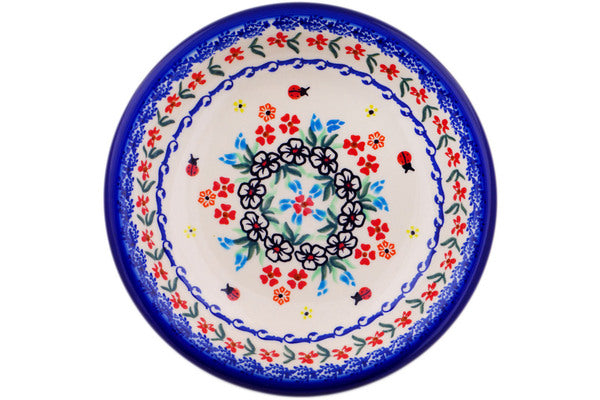 This Polish Pottery Pasta Bowl is handmade and handpainted by the Ceramika Bona factory in Boleslawiec, Poland. Manufacturer item number H3537Q. It is 1½" high and measures 9" by 9". The capacity of this Pasta Bowl is 23.67 oz (brimful) and it weighs 1.4 lbs. It is part of the Fanciful Ladybug Collection.