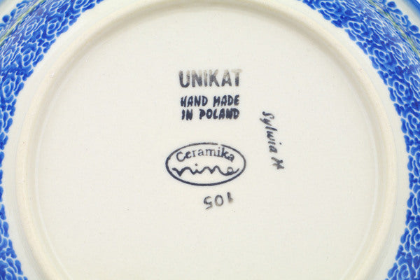 This Polish Pottery Pasta Bowl is handmade and handpainted by the Ceramika Nina factory in Boleslawiec, Poland. Manufacturer item number H3210P. It is 1½" high and measures 9" by 9". The capacity of this Pasta Bowl is 23.67 oz (brimful) and it weighs 1.4 lbs. It is part of the Gardens In Poland Collection.