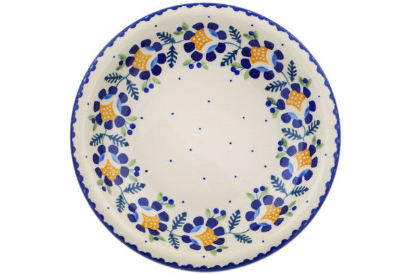 This Polish Pottery Pasta Bowl is handmade and handpainted by the Manufaktura factory in Boleslawiec, Poland. Manufacturer item number H0951O. It is 1½" high and measures 9" by 9". The capacity of this Pasta Bowl is 14.74 oz (brimful) and it weighs 1.4 lbs. It is part of the Orange And Blue Flower Collection.
